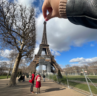 As soon as I landed in the CDG airport, I had to take a train into the city which took about an hour. Once arriving at Emersyn's apartment, she greeted me with pastries, baguettes, and cheese... my favorite 🥰 After getting some food in my stomach, the day really began. Our first stop, the Eiffel Tower! My first thought was "Wow this looks exactly like the one in Las Vegas, just bigger". As I got closer, I was in awe with the tower and the beautiful sunny day. Me and Emersyn found the perfect patch of grass to take pictures and took so many touristy pictures. Our next stop was Notre Dame, Sainte Chapelle, Pantheon, and Luxembourg Garden. Notre Dame is the cathedral that caught on fire in 2019, so it was still under construction. Around the construction, there were stories of Notre Dame before and after the fire. I thought this was really interesting since I forgot about the fire. I learned a lot through the pictures and captions. The Sainte Chapelle was absolutely beautiful from the outside, it looked like a royal palace. We didn't go inside since we didn't buy tickets, but the outside was gold and stunning. Lastly, the Pantheon looked like what a Pantheon usually looks like, very Greek like with pillars. My best description of the Pantheon is the white house had a baby with the Greek Pantheon. The Luxembourg Garden is nothing like a park in the US. It is so well organized and planned; there's a fountain in the middle with seats available. After sight seeing for the whole day, we went back to Emersyn's apartment and got some take out at the local Chinese restaurant right next door.